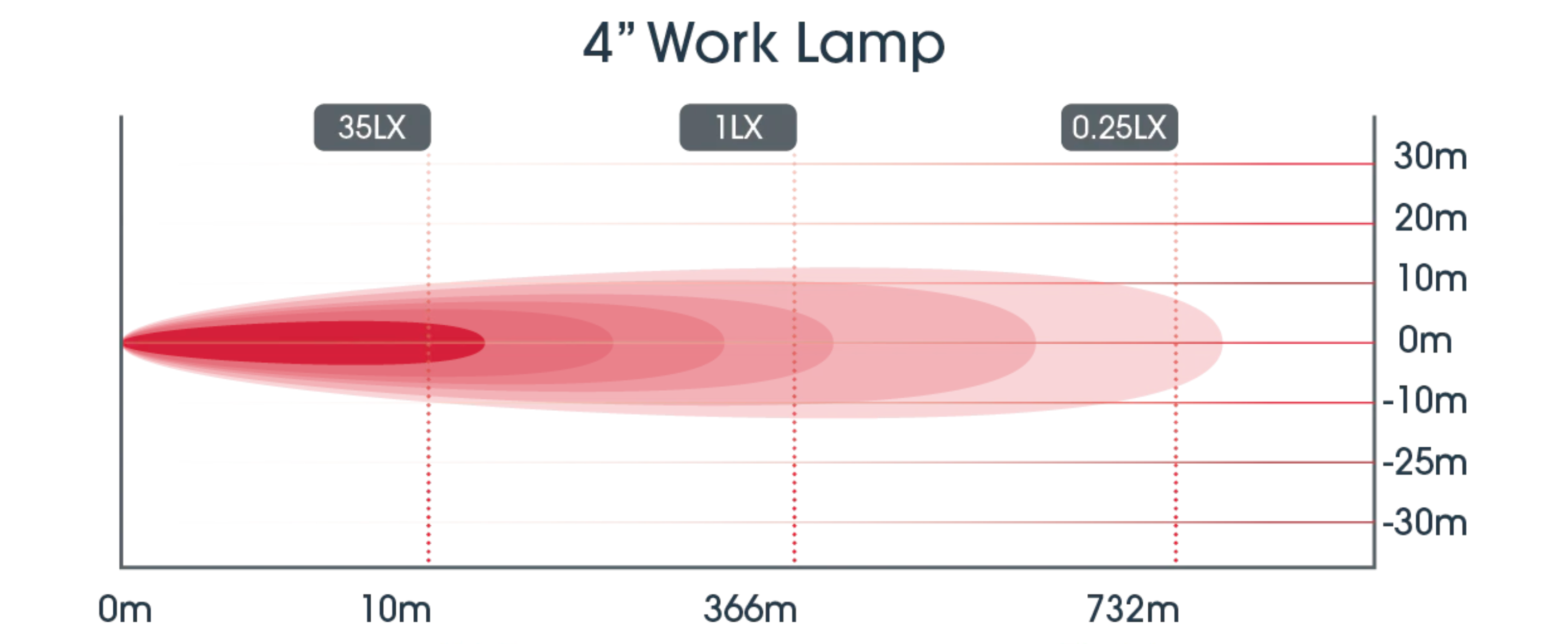 - 45W’s of high output Osram LED’s are precisely aligned within the spot beam reflector, providing driving light performance in a compact package.