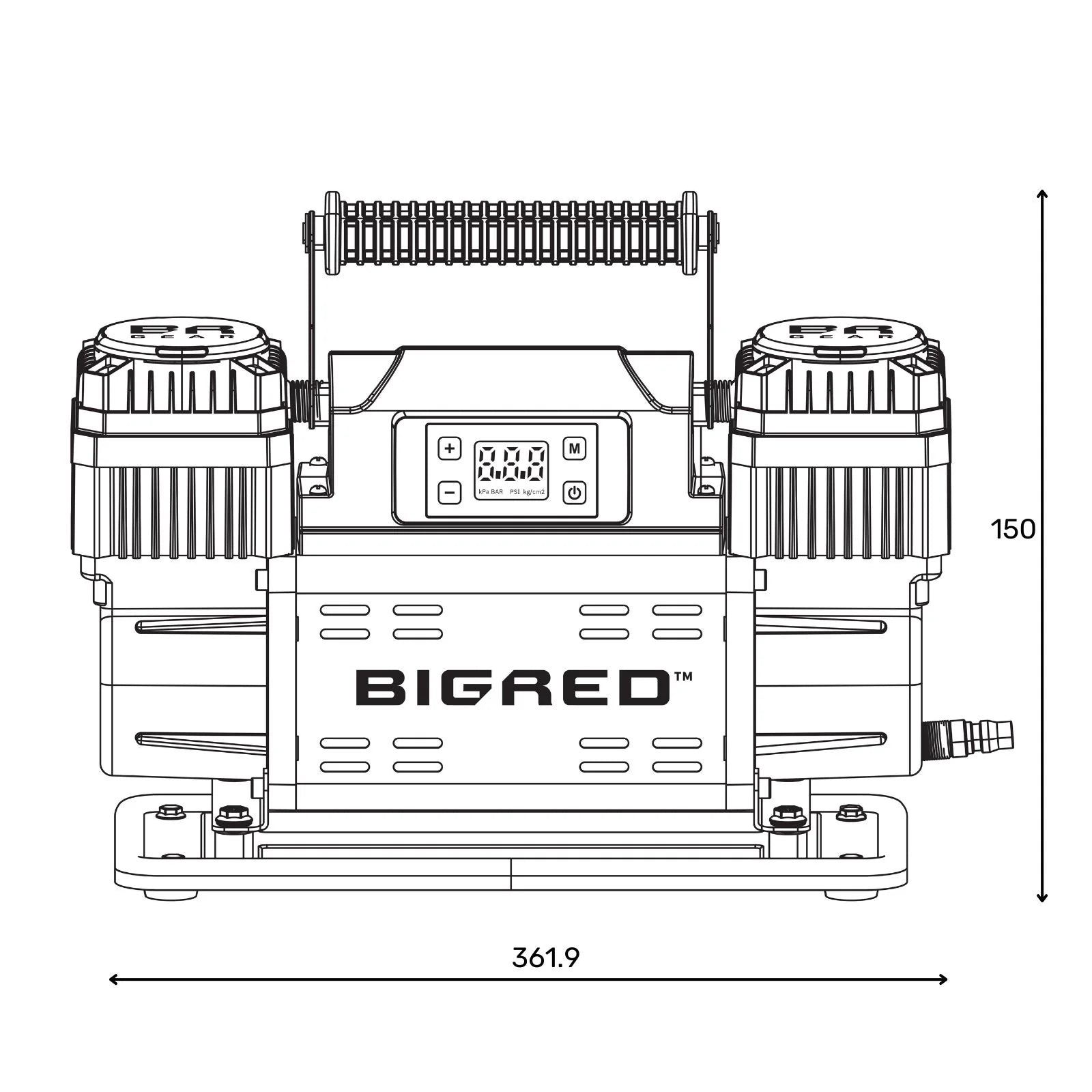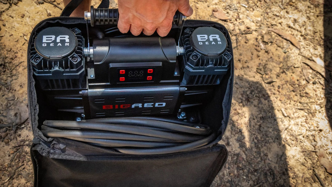 The Big Red Gear Air Compressor is compatible with multi-tyre inflation systems. We recommend use with the Big Red Gear 4xTyre Digital Air Hose Kit (BR8302) for ultra quick inflation of large 4WD tyres.